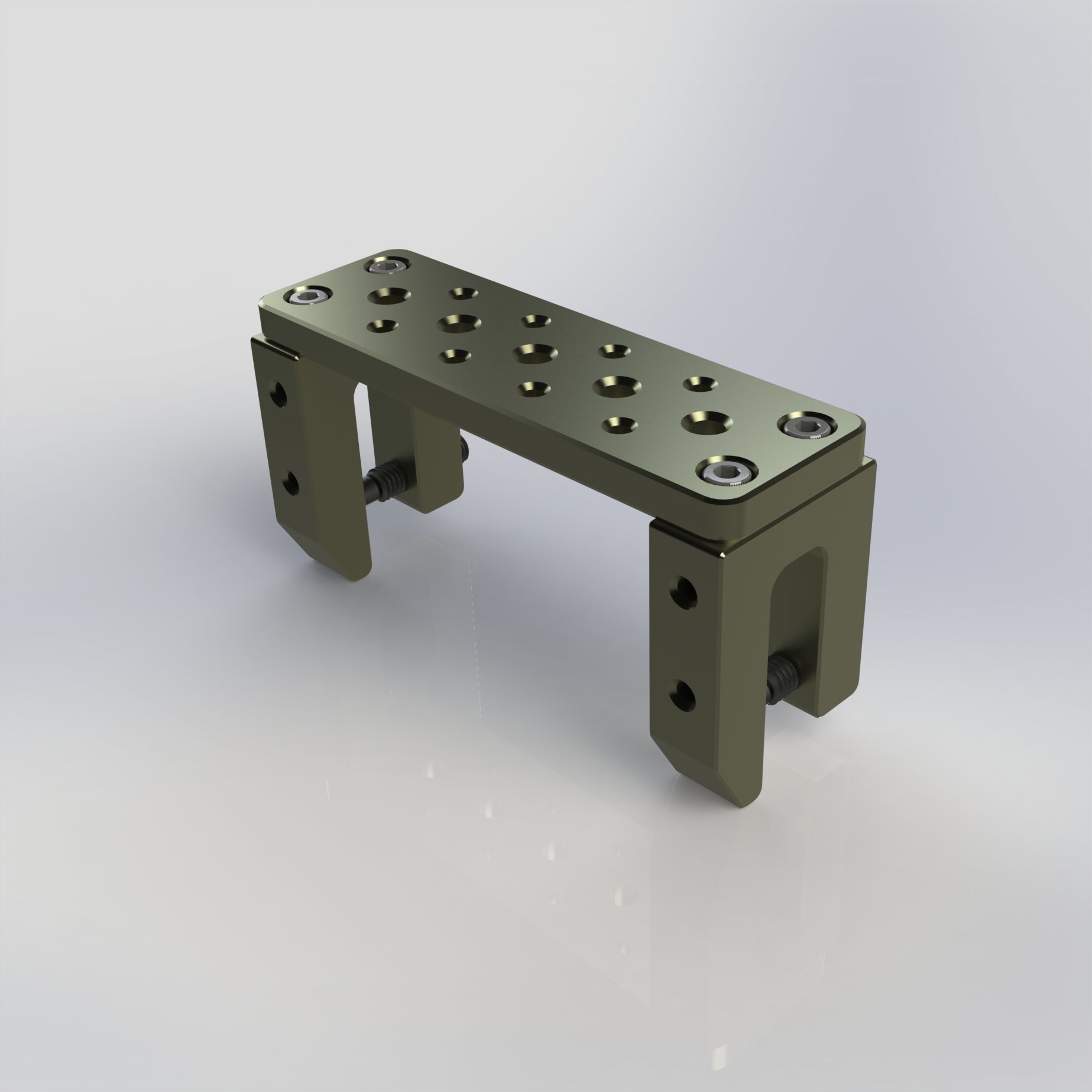 A modular version of the popular rail rack. This unit is 6 inch in length and is sized to accept the Mitchell Plate assembly. The plates are aluminum, hard anodized olive drab.